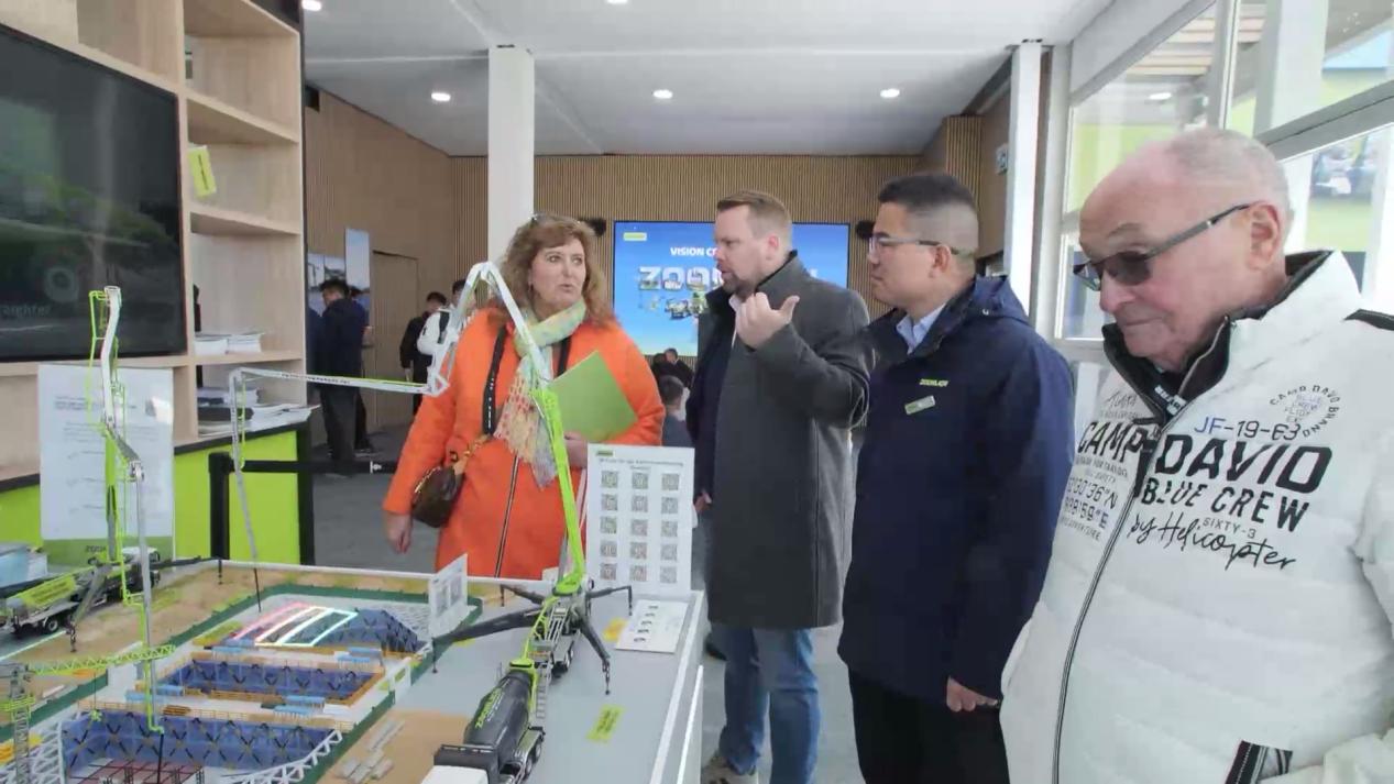 高聳入云的R800-40極光綠塔機是本屆德國寶馬展上唯一一臺中國品牌塔機,也是中聯(lián)重科在歐洲市場展示的最大噸位塔機。碩大的四個支撐“腿”上印著的阿斯塔納世博館、盧塞爾體育館等全球知名施工案例,展示其在場館、橋梁、電建等各領(lǐng)域的豐富應(yīng)用場景。一經(jīng)亮相,便憑借其操作安全、施工高效、運輸便利的優(yōu)勢,在現(xiàn)場贏得大量訂單。