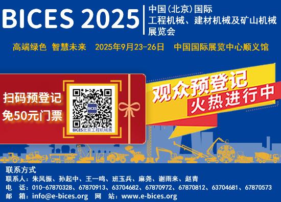 主題為“高端綠色 智慧未來”的中國(北京)國際工程機械、建材機械及礦山機械展覽會(BICES 2025)將于9月23—26日在中國國際展覽中心順義館舉辦。